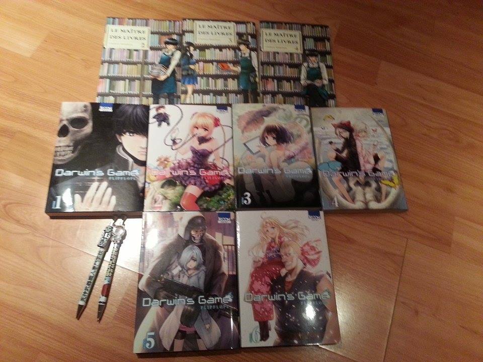 Djihane a immédiatement craqué pour le tome 2 du Maître des livres aux éditions Komikku. Quant à moi, j’ai attendu la toute fin de la journée pour acheter les 3 premiers tomes de la fabuleuse série Darwin’s Game aux éditions Ki-oon (Ben oui, c’est moi qui portais les achats ^^).