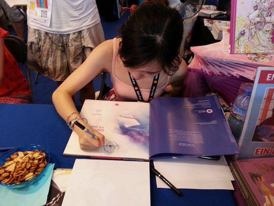Ein Lee en pleine dédicace de notre exemplaire de « Le mot qui arrêta la guerre »
